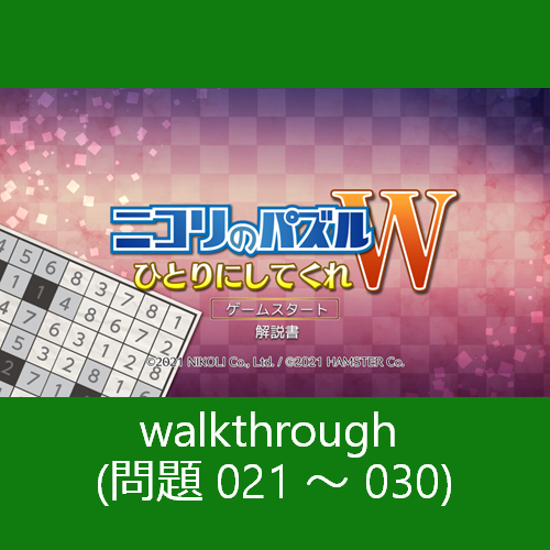 【Xbox】【Windows】ニコリのパズルW ひとりにしてくれ | walkthrough (問題 021 ~ 030)