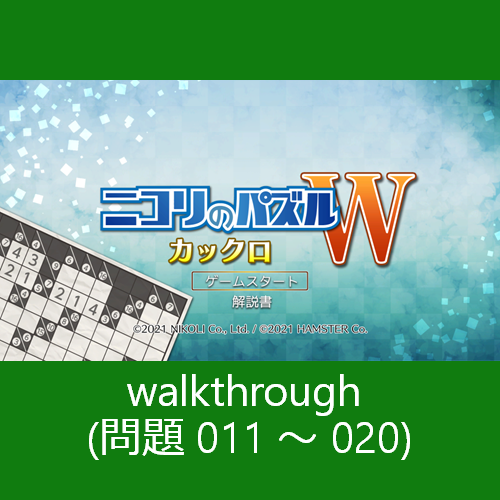 ニコリのパズル シリーズで『カックロ』をテーマとしたパズル ゲーム、「ニコリのパズルW カックロ」の 問題 011 ~ 020 までの解答を纏めました。